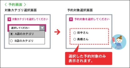 機能一覧 予約対象設定 「ヘアデザイナー」や「スタイリスト」といった施術者名や、「会議室A」や「会議室B」といった場所名などを最大60項目まで作成することができます。 予約を受付ける時間を設定することが可能です。 詳細はこちら 同じ時間帯に、複数の予約を受付ける設定ができます。 詳細はこちら 予約対象のカテゴリ設定ができます。 詳細はこちら 予約対象ごとに、表示するメニューを変更できます。 詳細はこちら 「詳細ページ」の作成が可能です。 詳細はこちら まずは使ってみてください! 予約システム利用までの流れ ご利用店舗様 お客様の声 代理店制度 FAQ セキュリティーへのこだわり 初心者の方にもやさしい安心サポート