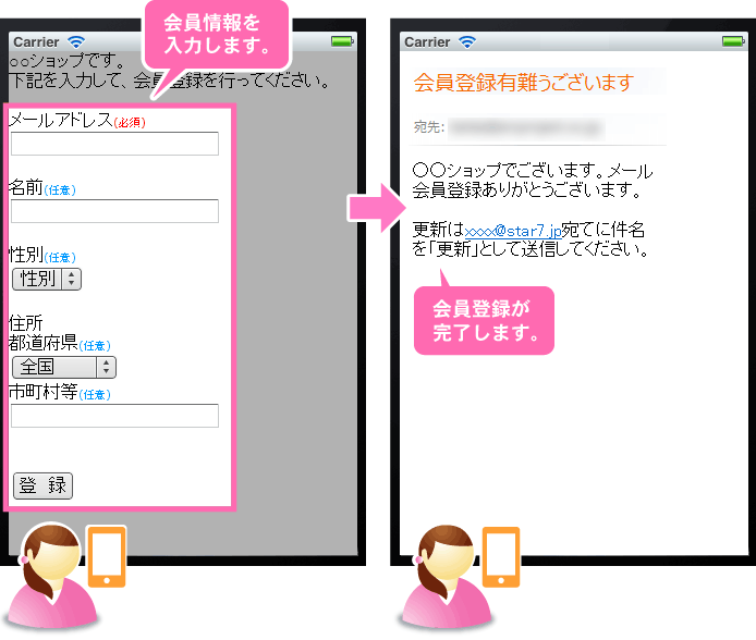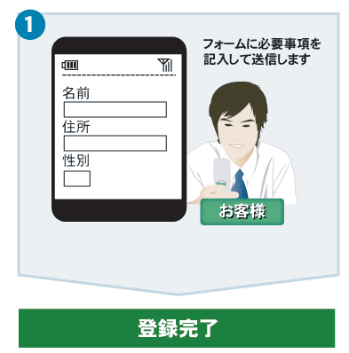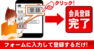 会員様にご登録情報を入力いただくだけで登録が完了します。※メールアドレスを取得しない場合、ご利用いただけます。