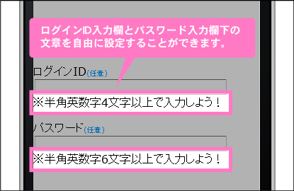 ログインID入力欄とパスワード入力欄下の文字を自由に編集することができます。