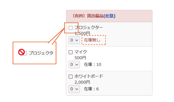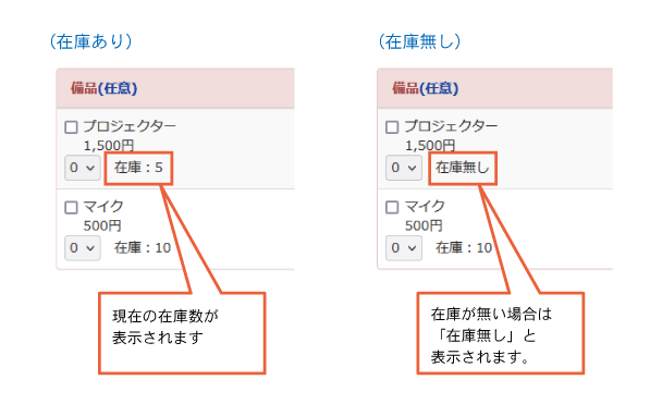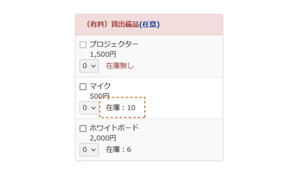 在庫数を設定することで、予約と同時に備品の貸出などを行った場合に