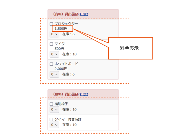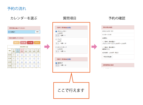 例)貸し会議室やレンタルスタジオ予約の場合に、