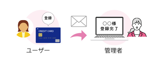 ユーザーから月謝のクレジットカード情報が登録された際に、管理者へ登録通知完了のお知らせメールを送信することができます。