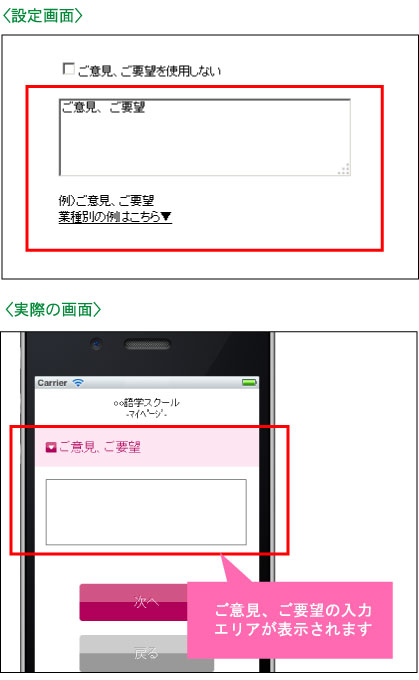 「ご意見、ご要望」というタイトルは自由に変更が可能です。