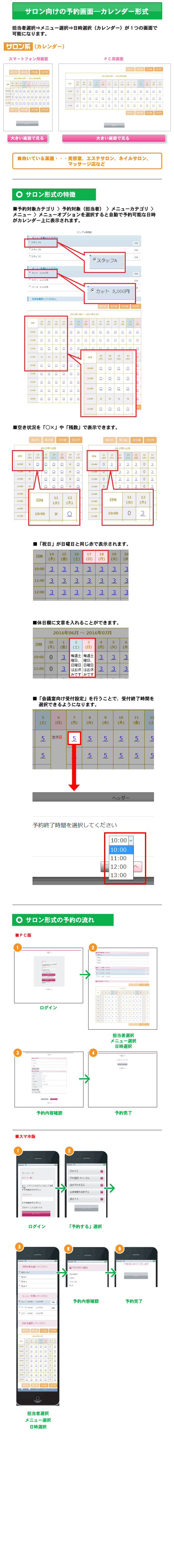機能一覧 サロンタイプカレンダー形式 まずは使ってみてください! 予約システム利用までの流れ ご利用店舗様 お客様の声 代理店制度 FAQ セキュリティーへのこだわり 初心者の方にもやさしい安心サポート