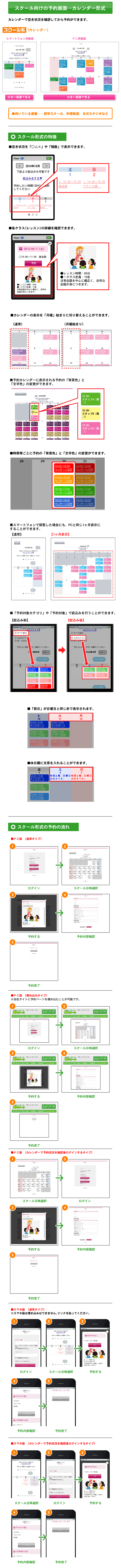 機能一覧 スクールタイプカレンダー形式 まずは使ってみてください! 予約システム利用までの流れ ご利用店舗様 お客様の声 代理店制度 FAQ セキュリティーへのこだわり 初心者の方にもやさしい安心サポート