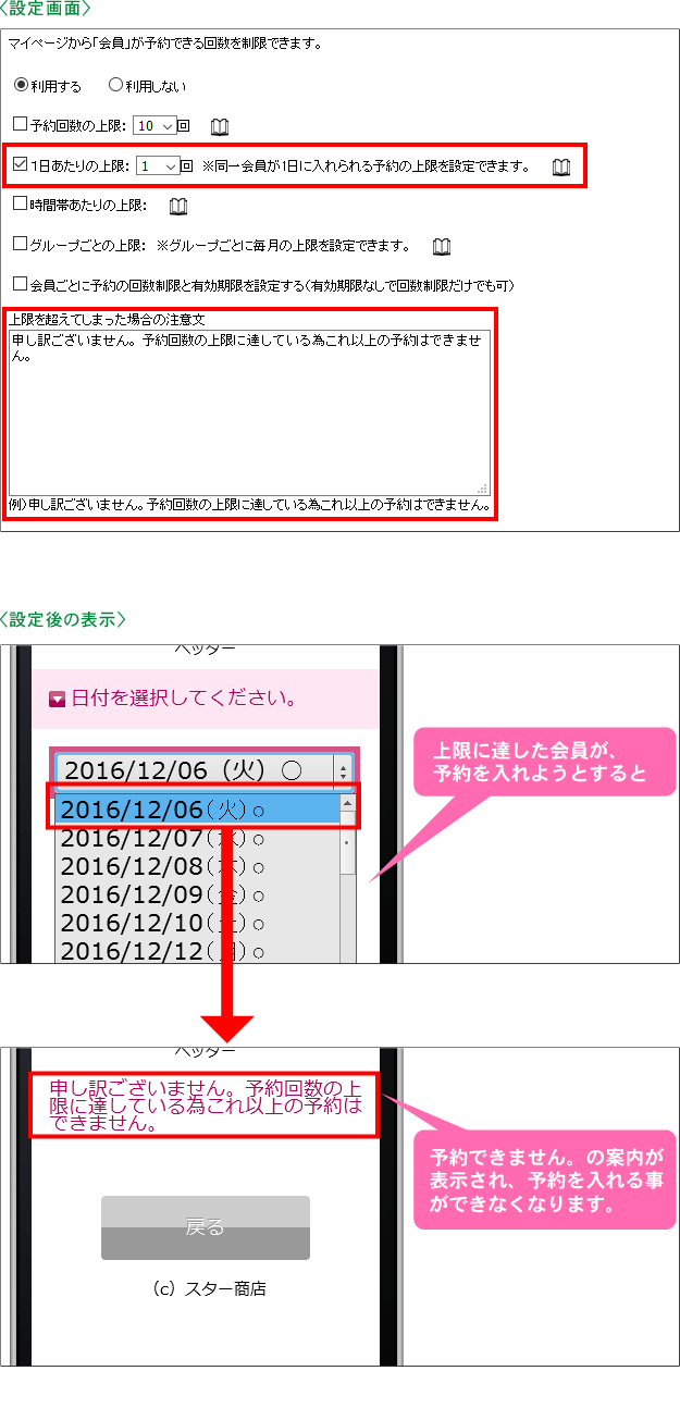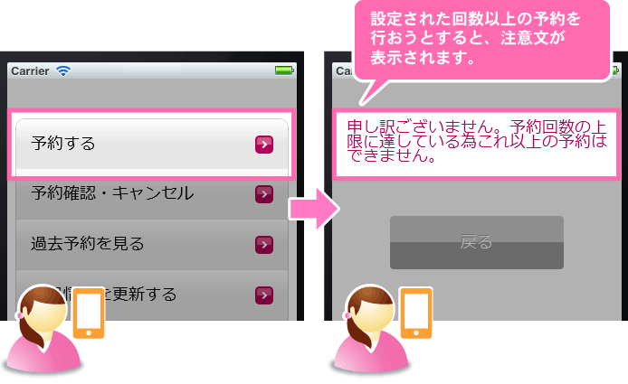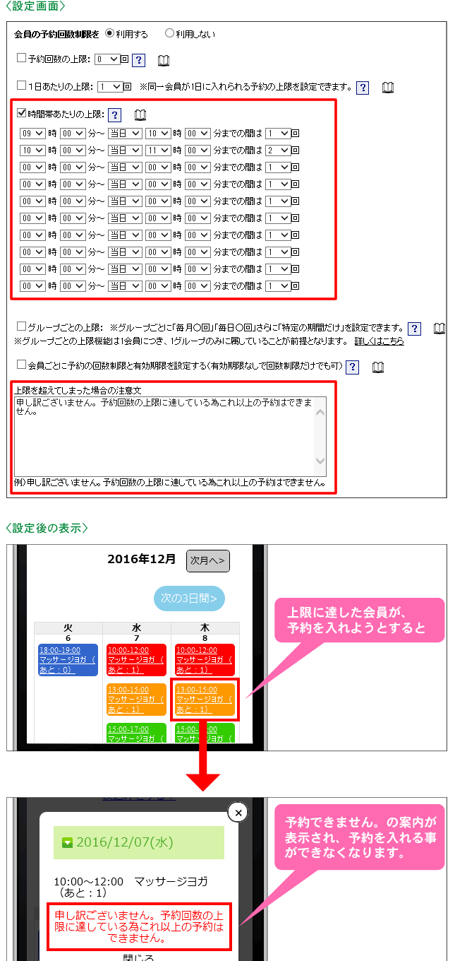 指定した時間帯に会員様が予約できる回数を制限できます。